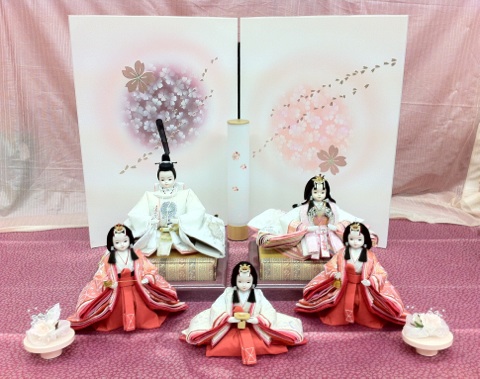 姫と三人官女はヘアスタイルが通常のお雛様と違うんですよ (^_-)