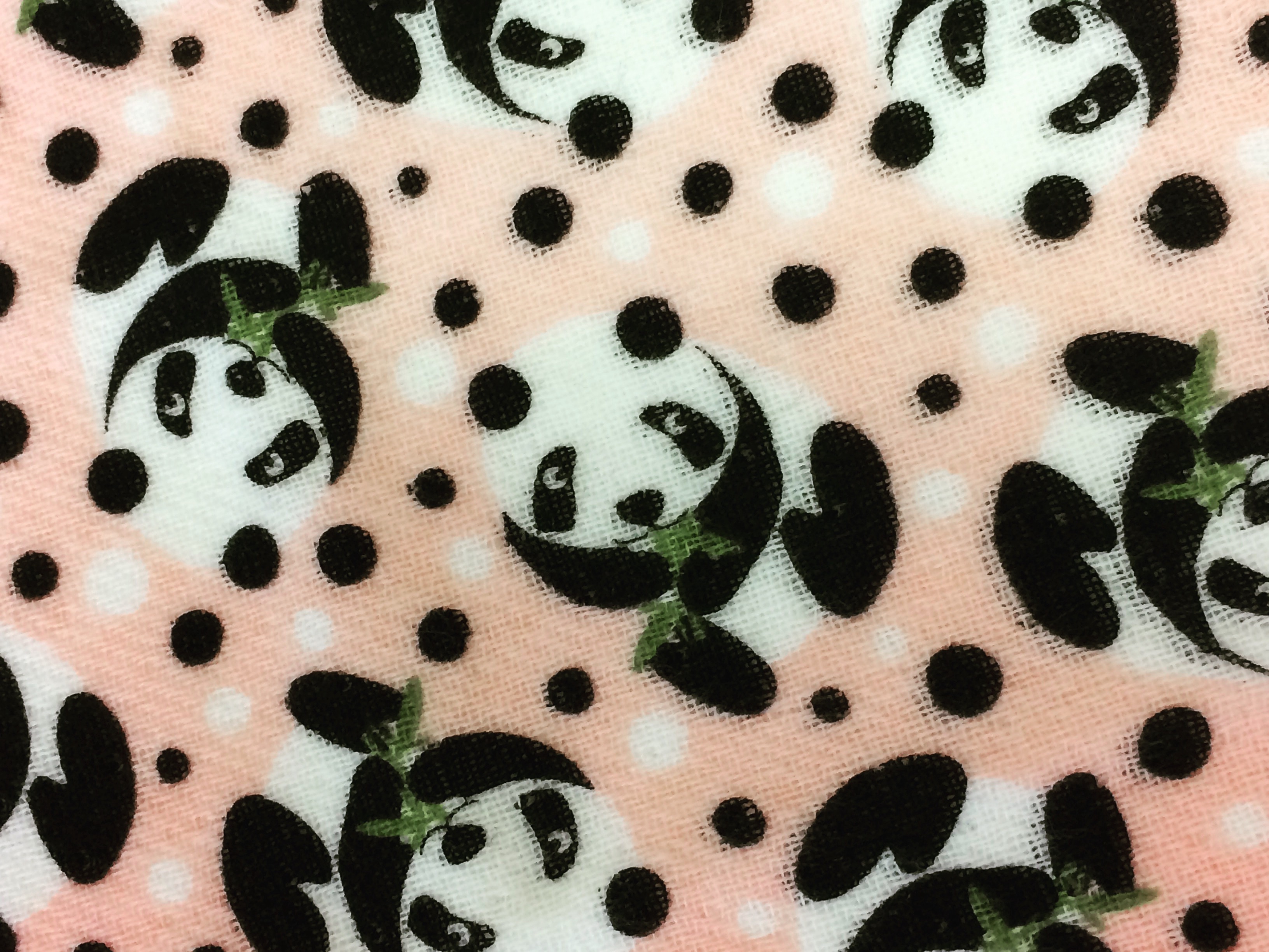 白黒の水玉 の中に 笹を嚙る パンダ がいっぱいですよ ♪