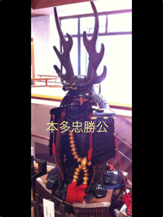 こちらは①で紹介した本田忠勝公の甲冑・漆黒の鎧に鹿角の脇立、金箔押しの大数珠がカッコイイですね