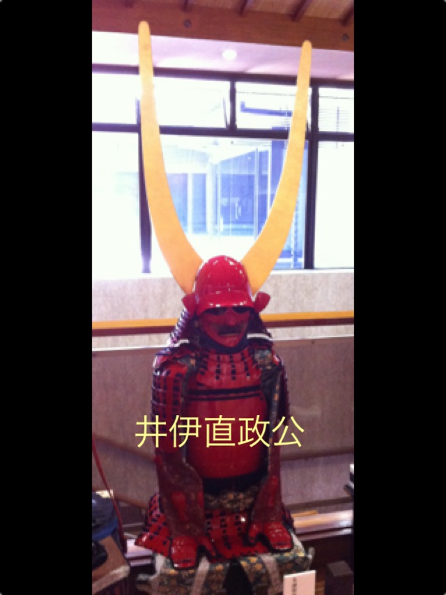 井伊の赤備えの井伊直正公の鎧・金箔の貼られた脇立が目立ちます