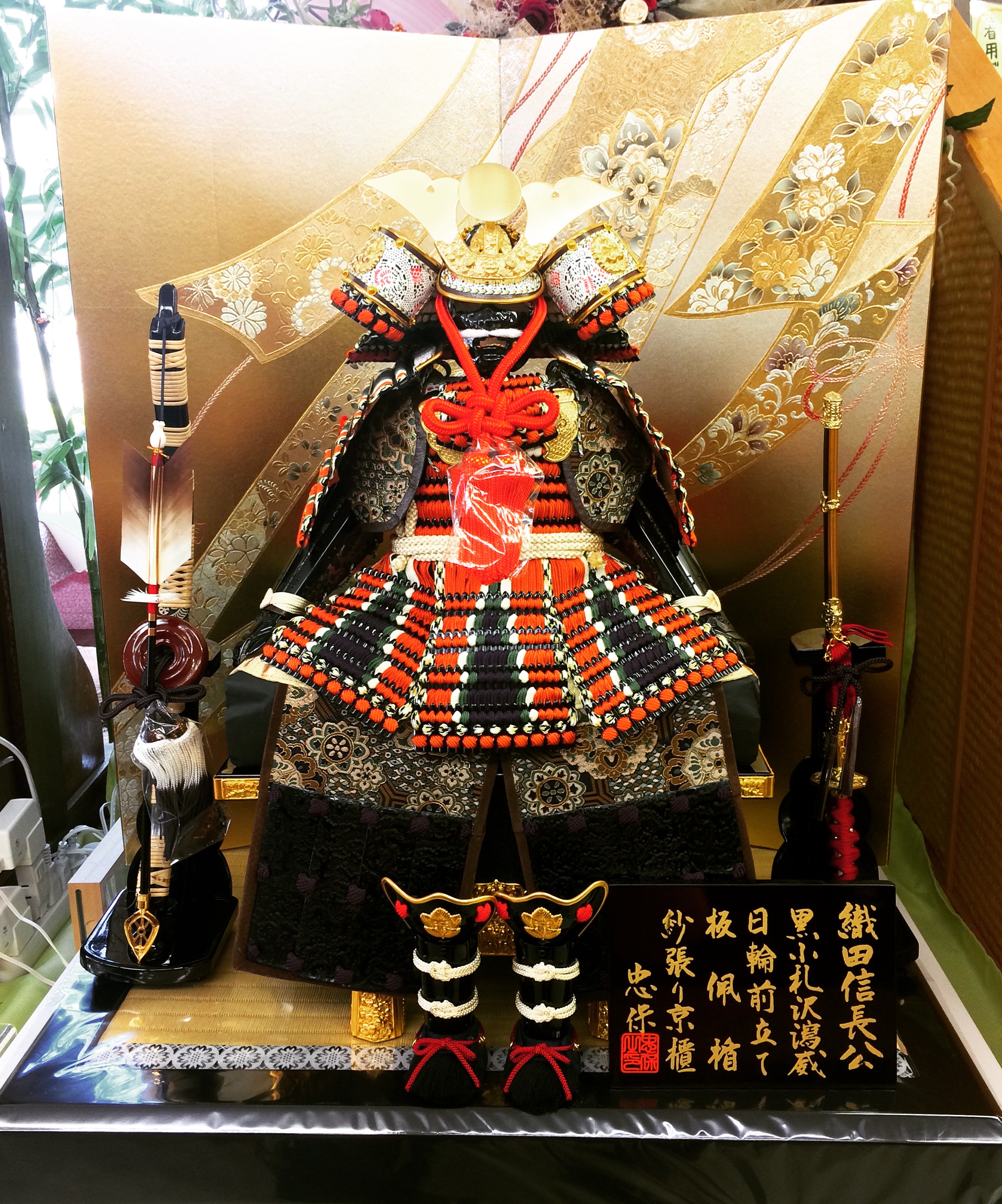信長公 の 鎧 を華やかな演出した セット にして飾っています‼︎