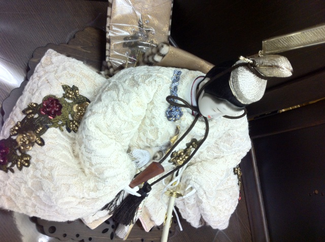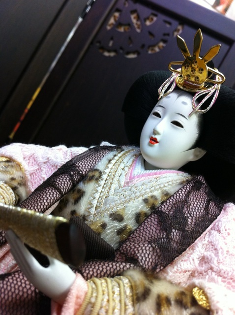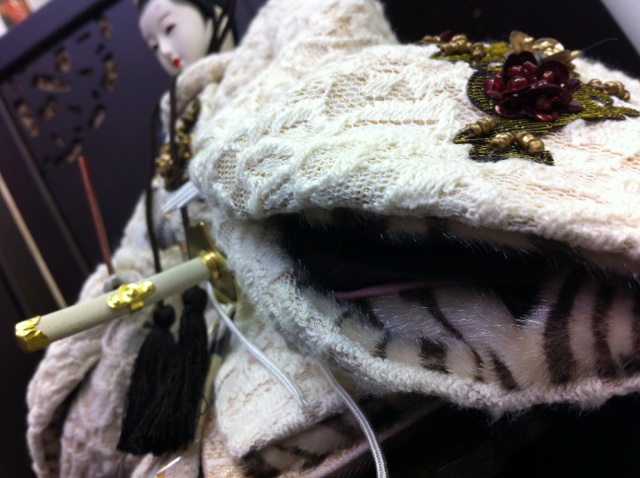 お道具を付けていないので、寂しくなってしまう飾りなんですが、レースのスカーフを足元に敷くことにより、上品な感じになりましたネ (^-^)