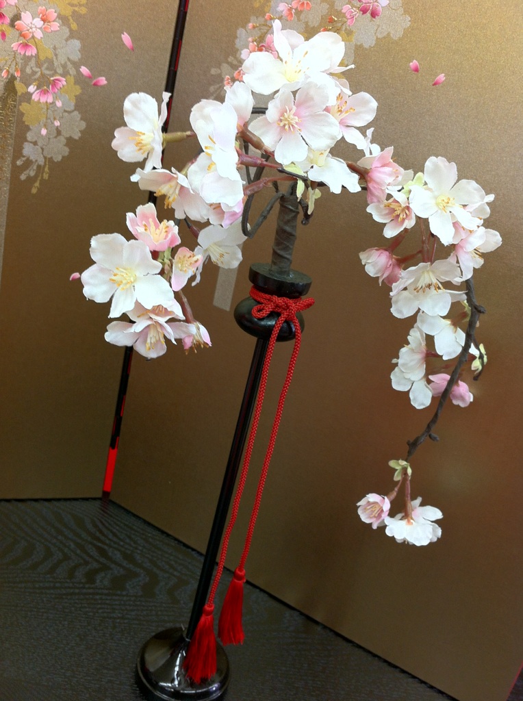 金ベースで桜の描かれた屏風に高さのある枝垂れ桜のお道具のみのシンプルながら高級感も感じられるセットですネ (^_^)v