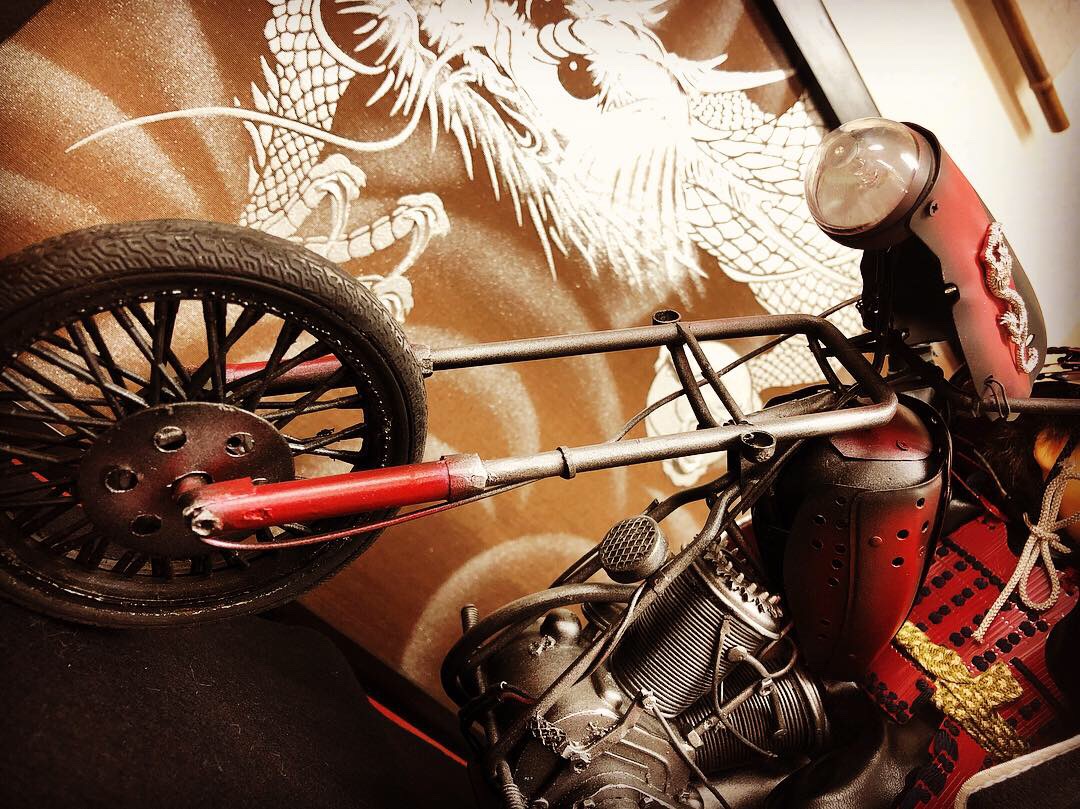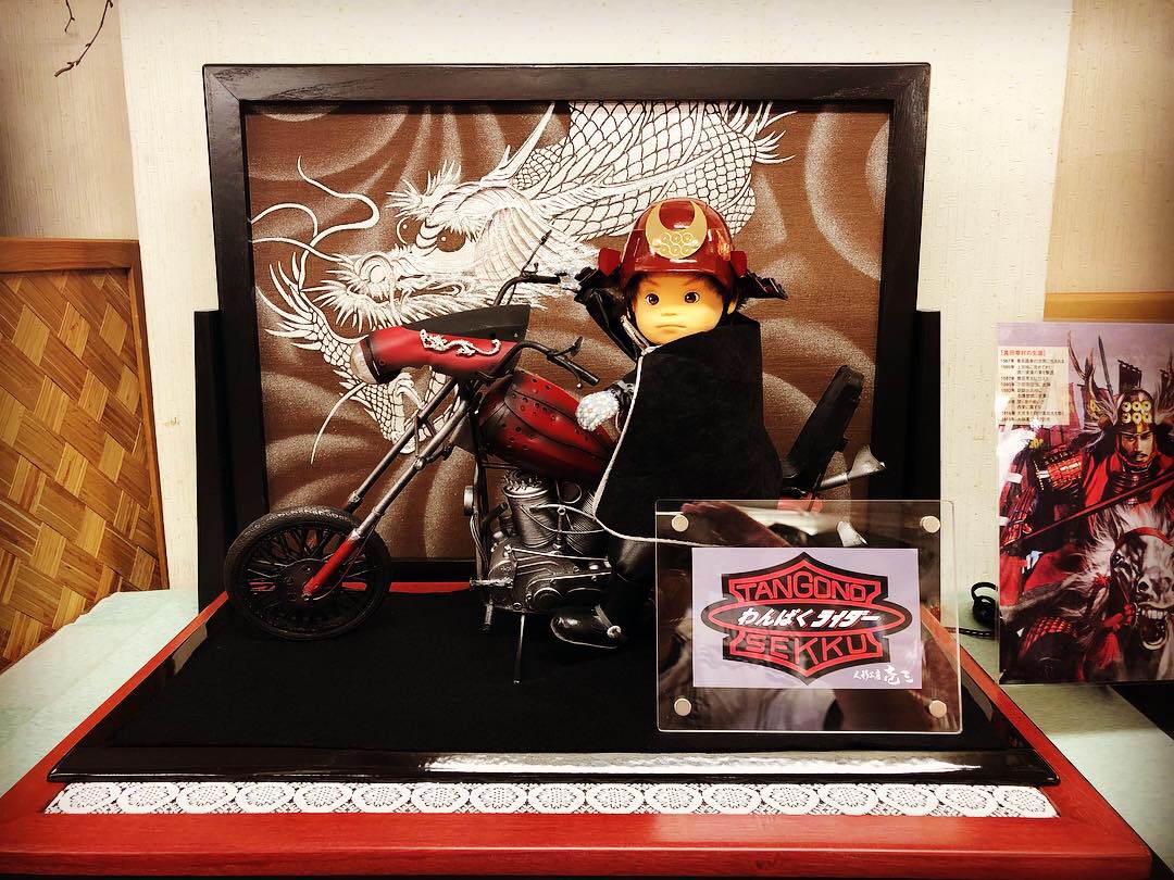 やんちゃなお顔 の 武将 が、颯爽と バイク で登場です
